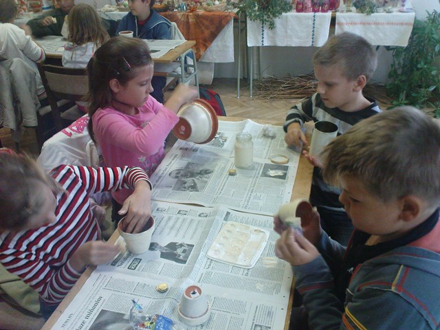 Venovať sa budeme aj novým technikám, postupom a materiálom: maľovanie na sklo, maľovanie na hodváb, výroba šperkov z drôtu, hliny a korálkov, tkanie náramkov, tašiek a záložiek, servítková technika, práca so sádrou, aranžovanie kvetov, batikovanie a pod.“ Naši žiaci si zatiaľ domov odniesli kvetináče vlastnoručne zhotovené servítkovou technikou, ozdoby na stromček vyrobené z jogurtových kelímkov a do konca roka ešte plánujú pripraviť svojim blízkym vianočné prekvapenia.